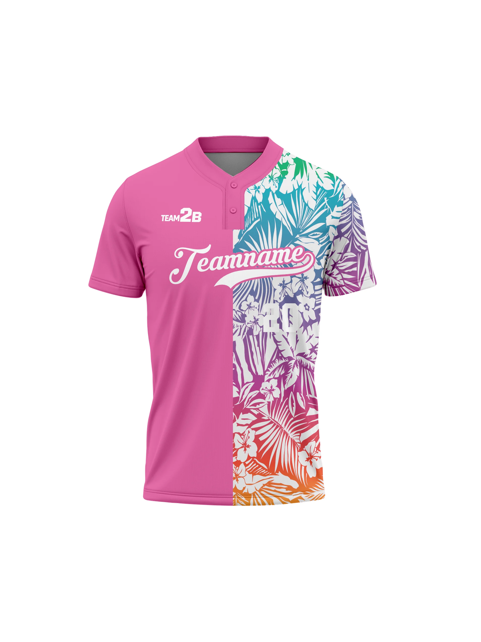 Two button baseball jerseys fully customized with your team’s colors, logos, names, and numbers. Made with breathable, premium polyester for comfort, durability, and all-day performance.